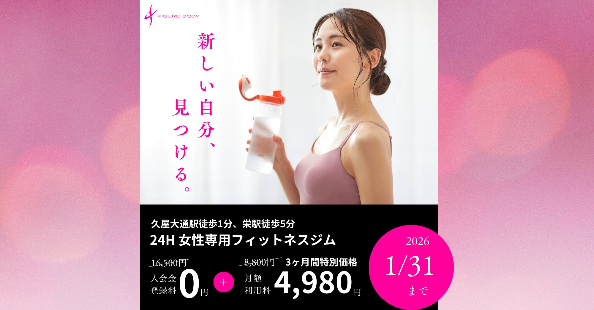 入会金登録料無料+3ヶ月特別価格で最大27,960円もお得!充実の設備に加え、各種プログラムや最新の美容器具があなたの美ボディをサポート。