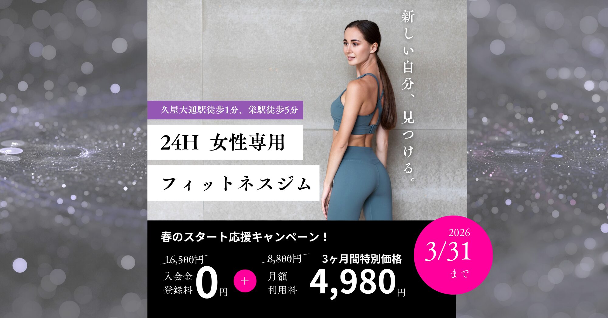 入会金登録料無料+3ヶ月特別価格で最大27,960円もお得!充実の設備に加え、各種プログラムや最新の美容器具があなたの美ボディをサポート。